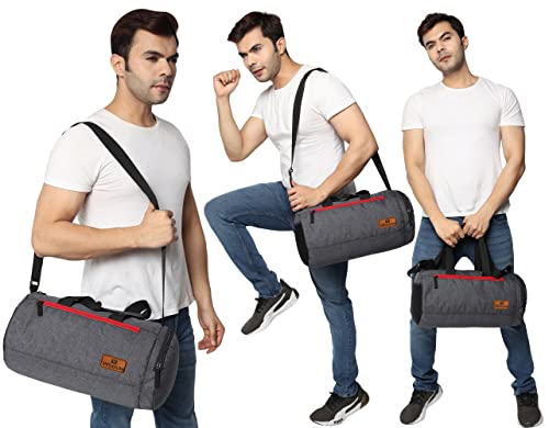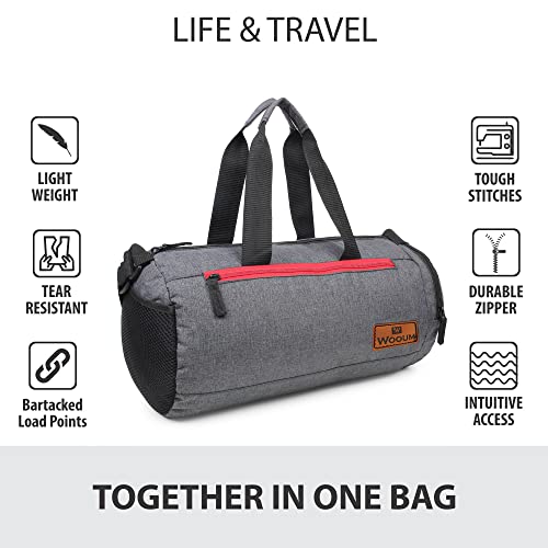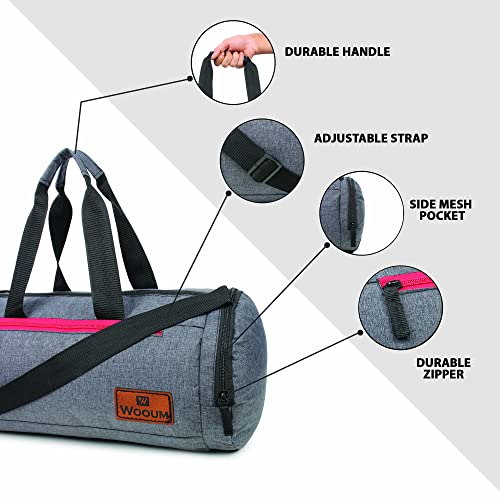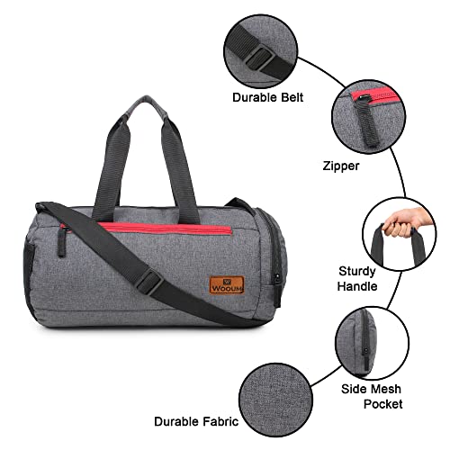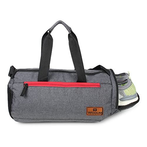 Wooum Polyester 23 cms Gym Bag Sport Outdoor Bag, Shoulder Bag Side Bag with Separate Shoes Compartment Water Resistance – Dark Grey