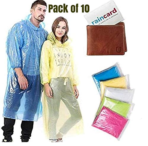 Woschmann-Credit Card Sized Raincoat for Unisex Reusable Rain Poncho, Rain Card, Rain Coat for Men, Women, Kids (Multicolor, Free Size)-Pack of 10