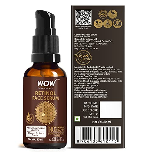 WOW Skin Science Retinol Face Serum – Oil Free – Skin Plumping, Boost Collagen, Anti Acne, Anti Aging, Restoration – No Parabens, Silicones & Mineral Oil, 30 ml