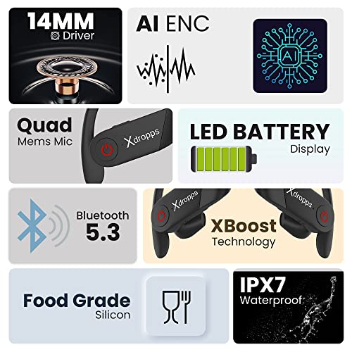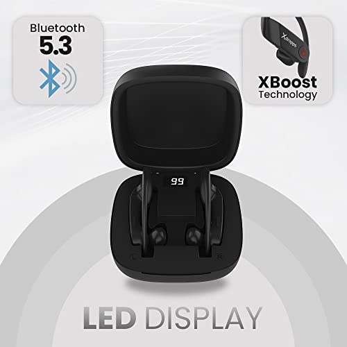 Xdropps Evolve 2.0 True Wireless Earbuds with AI ENC, Quad MEMS Mic, 14mm Drivers, 36Hrs Playtime, LED Display, IPX7 Water Resistant Headphones, EarHook Earphones, Bluetooth 5.3(Black