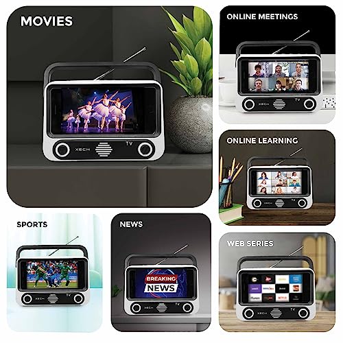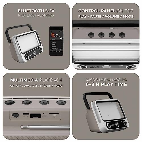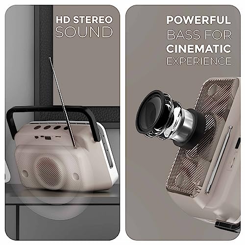 Xech Bluetooth Speaker with Phone Holder 5W Mini TV Wireless Speaker with 6H Play Time Retro Radio Design with Mobile Stand Multi Port Connectivity (Tellivibe Max) (Beige)