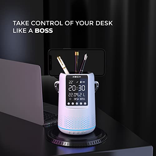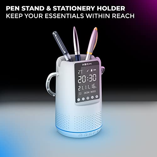XECH Bluetooth Speaker with Phone Holder Vibrant RGB Light Alarm Clock 10 Watt Mini Portable Wireless Speakers with Mobile Phone & Pen Stand with TWS Pairing Enhanced Bass (DESKBOSS)