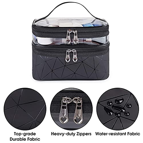 ?? ?? PVC Material — Double layer cosmetic bag is made of a thick and see-through pvc material. Sturdy pvc material keeps cosmetic bags from tearing. Besides, heavy-quality zippers and zipper closures are very smoothly shifted and will never get stuck. Makeup case features two large capacity compartments to help you keep your toiletries separate from you daily makeup.