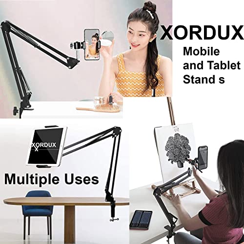 XORDUX brings you this tablet and mobile holder is designed for holding your mobile phone or tablet firmly with the ideal distance and angle for handsfree viewing your mobile phone and tablets.The XORDUX overhead tripod stand is made of heavy-duty iron, which gives it long-lasting durability. Additionally, it has a sturdy base and clip holder that hold and support your mobile and cell phone as you watch your favourite programmes, TV Shows , recording video, youtube, video shooting.