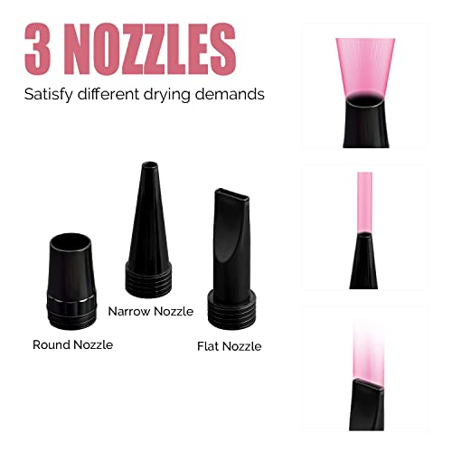 CONVENIENT: The pet dryer comes with 3 different nozzles to meet various drying demands, helping you easy to create different shapes for lovely pets.