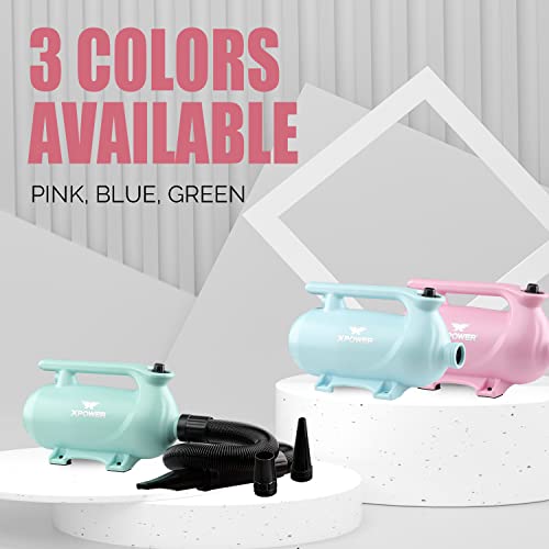 XPower Portable Pet Dryer 2-Heat Settings Noise Reduction Three Different Nozzles Pet Drying (B-163, Green)