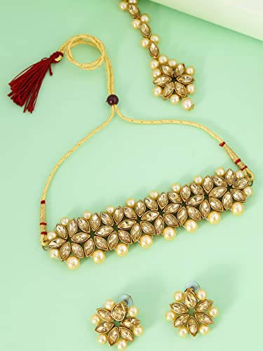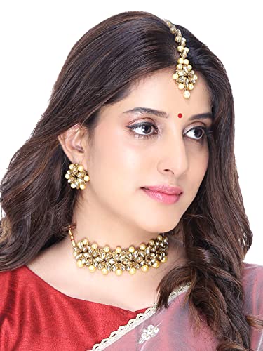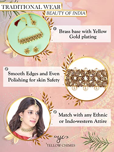 Yellow Chimes Jewellery Set for Women and Girls Traditional Golden Kundan Necklaces Set Gold Plated | Kundan Set | Birthday Gift for girls and women Anniversary Gift for Wife