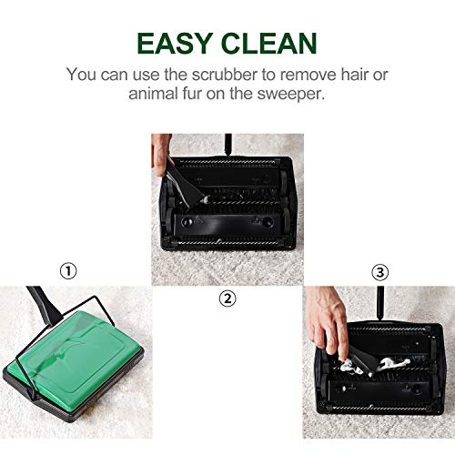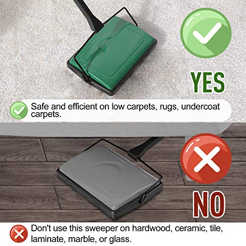 Yocada Carpet Sweeper Cleaner for Home Office Low Carpets Rugs Undercoat Carpets Pet Hair Dust Scraps Paper Small Rubbish Cleaning with a Brush Green