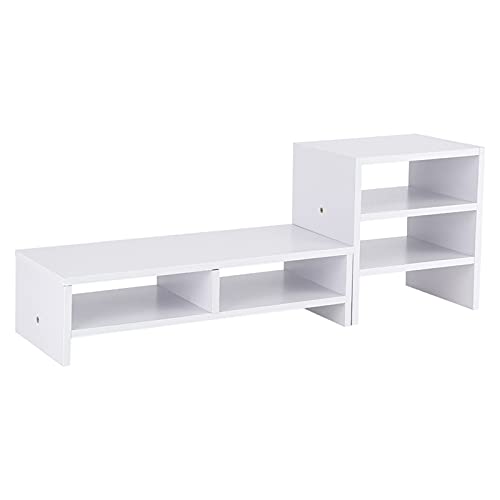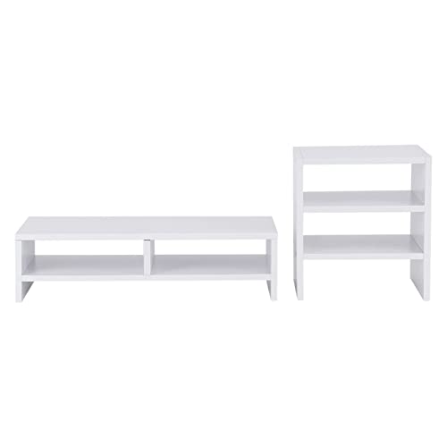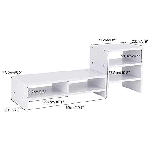 Yosoo Wooden Monitor Riser Stand with 3 Layers Shelf Height Increase, Neck and Spine Protection – Tidy Desk for Home or Office Use (White)