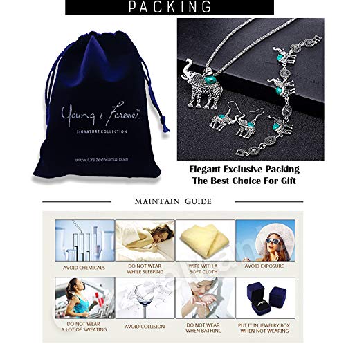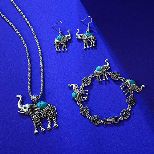 Young & Forever Rakhi Gift for Brother Sister Boho Gypsy Antique Silver Tribal Pendant Set for Women oxidised Turquoise Stone Lucky Elephant Drop Earring Bracelet Jewelry Set for Girls Fancy Fashion