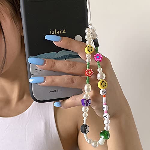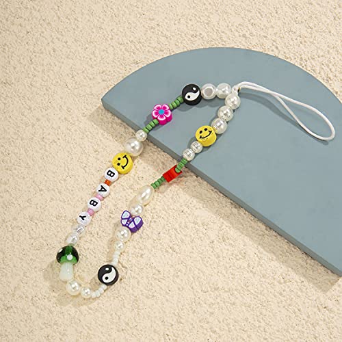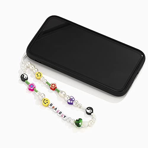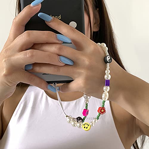 Young & Forever Valentine Gift Smiley Beaded Phone Lanyard -Yin Yang Evil Eye Heart Beaded Phone Charm Wrist Strap Fruit Star Letter Flower Pearl Handmade Bracelet Keychain Cell Phone Accessories for Women and Girls