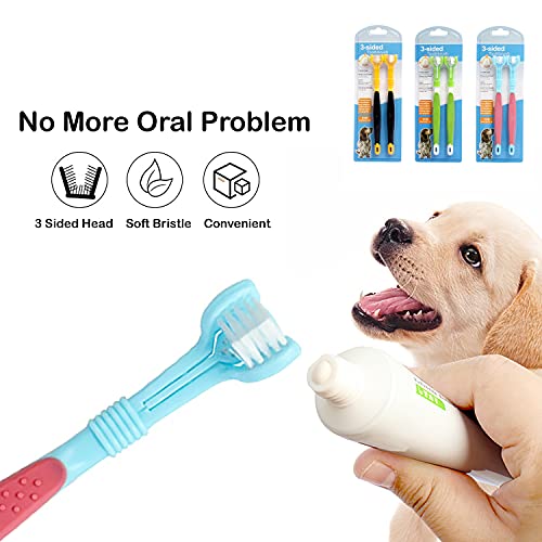 YOUSTYLO – YOU ARE PRIORITY Dogs Toothbrush Three Sided Pets Clean Mouth Dental Care Cleaning Tools Bad Breathe Tartar Teeth Clean Pet Teeth Toothbrush Puppy Cat Toothbrush (Set of 2, Blue-Pink)