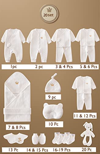 YUPPIN Unique Gift Set for Newborn Baby Boy and Baby Girls- White Set of 20 Dresses & Baby Accessories