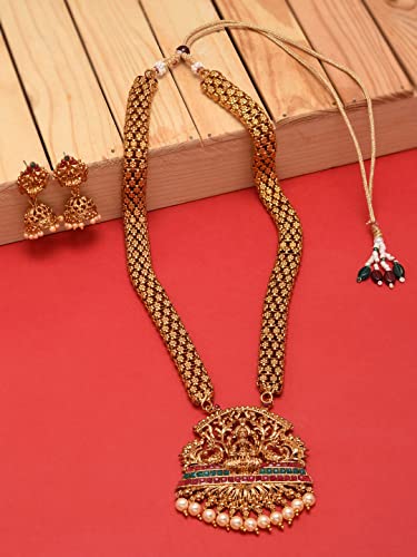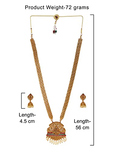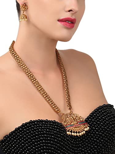 ZAVERI PEARLS Antique Gold Tone Bridal Collection Long Temple Necklace & Earring Set For Women-ZPFK10177