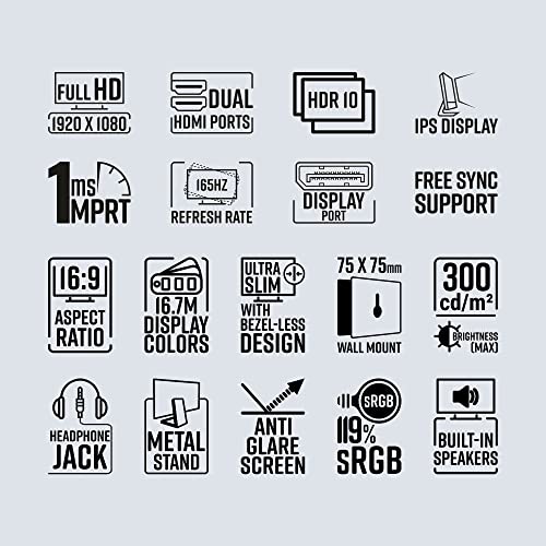 Curved Panel (1500R) | 165Hz refresh rate | Free sync support | 1ms MPRT Response time.