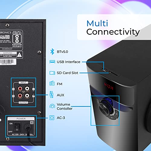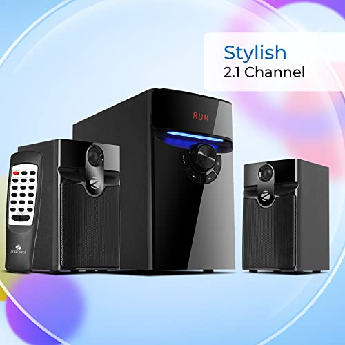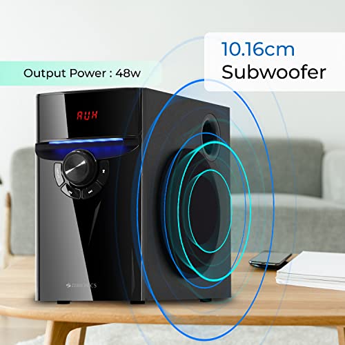 ZEBRONICS Bronze 100 48 Watts RMS, 2.1 Speaker with Bluetooth 5.0, LED Display & Lights, Remote Control, USB, SD, AUX Input, FM Radio and Stylish Design