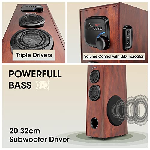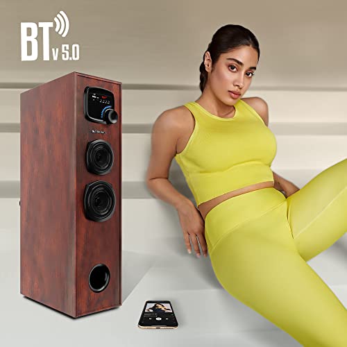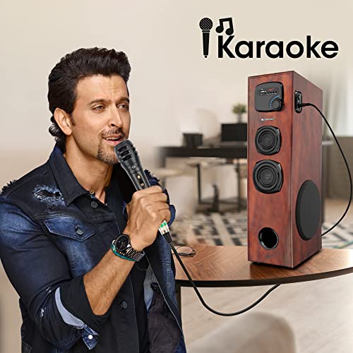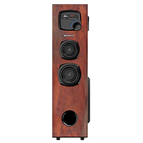 ZEBRONICS BT909RUCF Tower Speaker with 80W RMS, 20.32cm (8”) subwoofer, Wired mic for Karaoke, 3 Way Design with Midrange & Tweeter, Remote, Bluetooth v5.0, AUX, USB, mSD, LED Display and Indicator