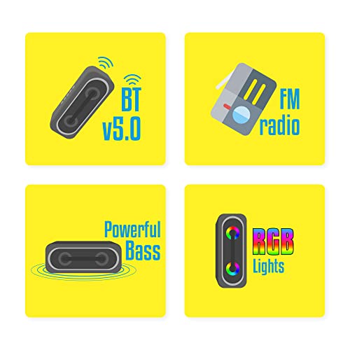 Comes with a built-in FM radio feature. Easy button controls to help change input modes, RGB ON/OFF, volume adjustment and media control.