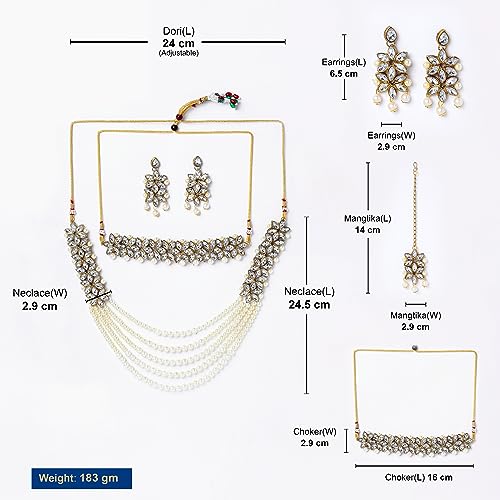 ZENEME Jewellery Sets for Women Gold Plated Bridal Long Necklace Set Neck Choker with Earrings and Maang Tikka for Women & Girls