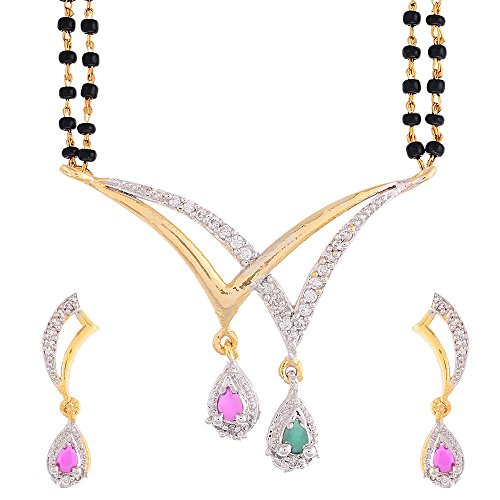 ZENEME Precious Collection of 2 Mangalsutra Sets, 1 Earcuff, 2 Earring – Jewellery for Women/Girls Combo of 5
