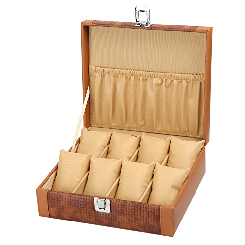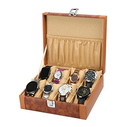 ZenWood Unisex 8 Slots Watch Box Organizer PU Leather Watches Display Case Storage Box Outside Color – Textured Brown/Inside Color- Beige Velvet