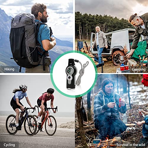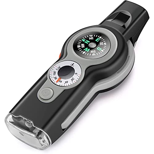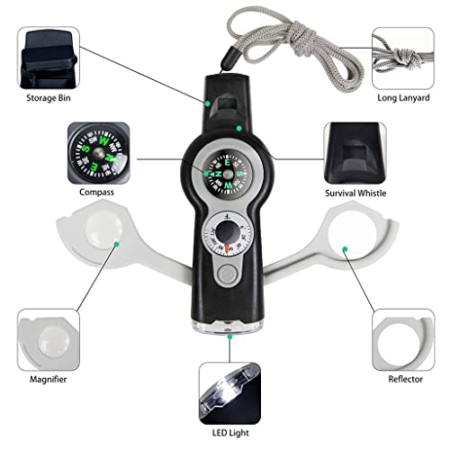 FUNCTIONAL SURVIVAL WHISTLE: The added high brightness LED flash light can provide sufficient light for emergency; precise compass can tell you the right direction in field; and you can through the mini themometer to know the temperature; while the reflective mirror and magnifying glass allow you can use sunlight to have fire when you don’t have any lighter, especially for extreme environment.