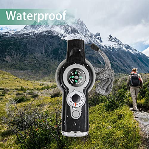 ZIBUYU® 7-in-1 Emergency Survival Whistle, Outdoor Whistle with Lanyard, Compass and Thermometer, Ideal for Camping, Hiking, Climbing, Hunting, Fishing, Rescuing, Scout Training, Grey