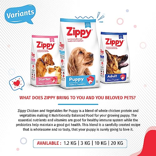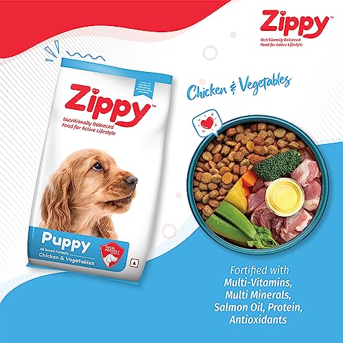 ZIPPY Chicken & Vegetables Dry Dog Food for Puppy | Nutrient-Rich Dry Food for Puppies | Pellet Puppy Dog Food for All Breed Sizes. (Age: 3 to 12 Months) – 1.2KG