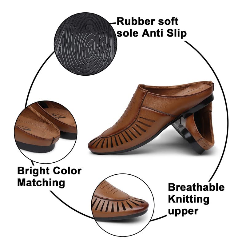Zixer Summer Latest Urban Men’s Shoes Premium Synthetic Leather Mule Loafers Men’s Shoes Handmade Ultra Premium Lightweighted Daily Easy Wear Open Back Half Cut Trending Classic Slip On Shoes for Men
