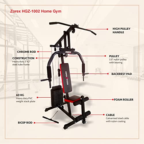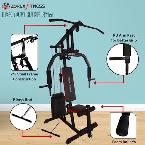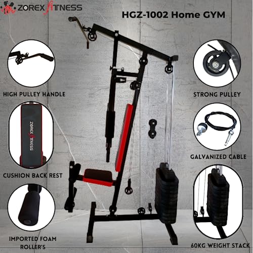 Zorex HGZ-1002 Home Gym Multi Machine All in one equipments for Men Workout Machine Chest Biceps Shoulder Back Triceps Legs Muscle Multiple Exercise at Home, (Multicolor) Black