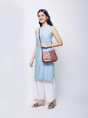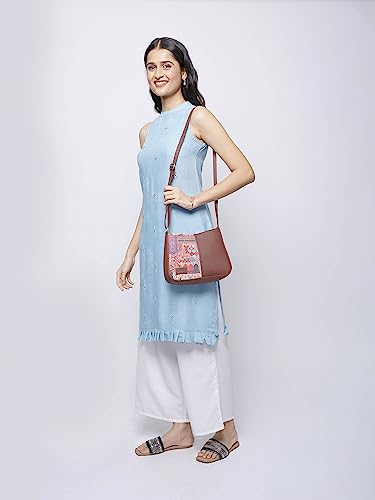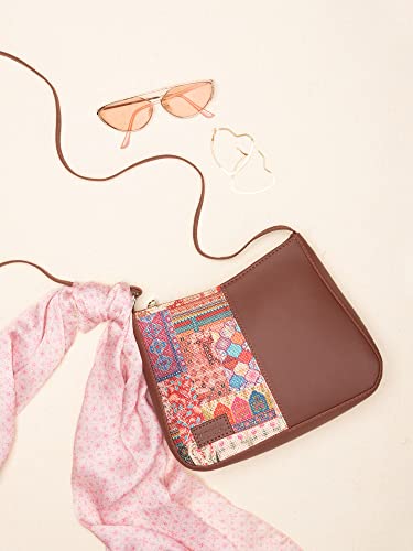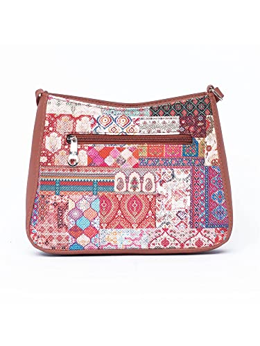 ZOUK Kutch Gamthi Abstract Printed Women’s Jute Handcrafted Vegan Leather Multicolor Boat Sling Bag