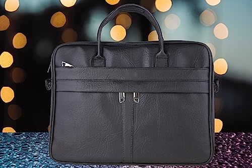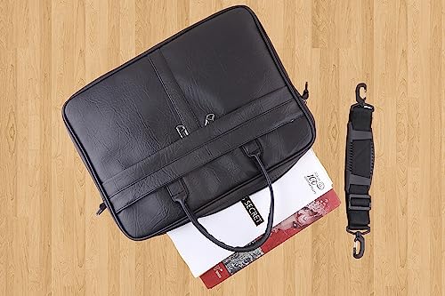 Lightweight yet durable, the 15.6-Inch Premium Laptop Shoulder Bag carries a laptop plus other everyday business essentials, equipment, accessories and more all in one place, neatly organized and perfectly portable. The case fits laptops up to up to 15.6 inches inside a thick padded compartment keeping your laptop safe. This elegant case is handcrafted from premium leatherette and lined with polypropylene.It comes with an adjustable padded shoulder strap and 2 additional accessory zipper pockets (for portable mouse, Mobile, pens, documents, diaries and other stationeries).