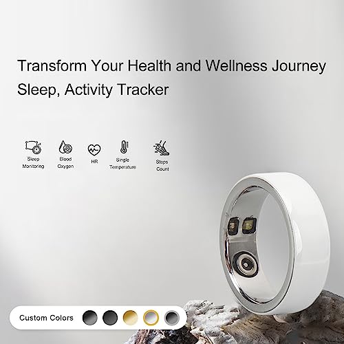 Zudoo Smart Ring, Bluetooth IPX8 Waterproof Health Fitness Tracker Lightweight Activity Tracking Ring for Heart Rate Monitor, Sleep Monitor, Pedometer, Body Temperature, Blood Oxygen (22#)
