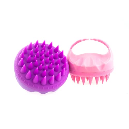 ZUNBELLA PACK OF 2 Soft Silicone Shampoo Scalp Shower Hairbrush Hair Washing Exfoliating Massager Brush Comb for Men Women Massage Scalp and Get Rid of Dandruff (PURPLE & LIGHT PINK)