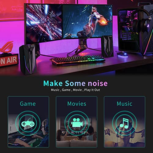 ZUO XI Desktop Speakers, 2.0 Channel PC Computer HiFi Stereo Gaming Speaker with Colorful LED Light Modes, Enhanced Bass and Easy-Access Volume Control, USB Powered with 3.5mm AUX-in.