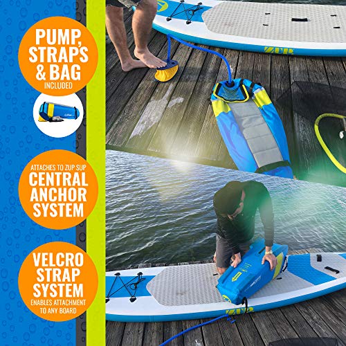 QUICK INFLATION AND SET UP: Simply inflate the seat with the included foot pump and attach it to your ZUP paddleboard using the central anchor system or to other boards with the velcro straps