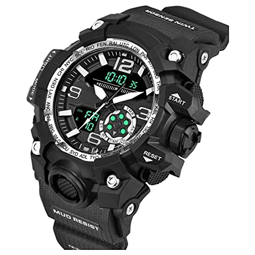 Shocknshop Analog Outdoor Sports Digital Dial Watch for Men Boys (Black Dial and Strap) -W07