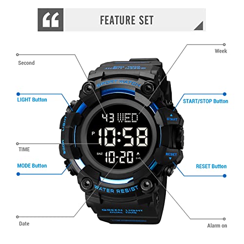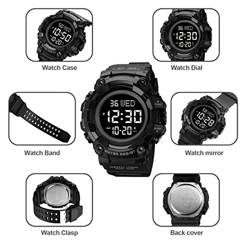 SKMEI brand Outdoor Sport and Fashion Casual Style. We are committed to providing the best products, the best service. This fashionable digital display led wrist watch offers high precision and elegant appearance. This watch is very durable and supports long time using. Fashionable sports dial design, military-style outlook. A smooth band, simple to figure out how to use, multifunction and Large Dial and numbers with light, you can see the time display brightly and clearly at dark. Outdoor sports watch 1310 is a good choice for all ages. All these features provide good wearing experience. Enjoy the convenience of this multifunction watch during both outdoor and indoor activities while staying in style. The unique minimalism design is assured to be a talking point wherever you go. MULTIFUNCTION SPORTS WATCH ? Watch is really light ( 53g ) ? Easy to set but still comes with an instruction (English & Chinese) ? Large number are easy to read ? Alarm & Countdown work perfectly ? Clear backlight ? Plastic Case, PU Strap, Stainless Steel Buckle, Resin Glasses, LED Display. A good selection if you need a sport partner. ? Case Thickness: 14 mm/0.55 inch ? Dial Diameter: 49 mm/1.9 inch ? Band Length: 260 mm/10 inch ?Band Width: 22 mm/0.9 inch MEN DIGITAL WATERPROOF WATCH 164FT/50M Water Resistant Perfect for all kinds of sports, indoor and outdoor activities or daily use. Feel free to wear the watch when you are showering, swimming or in raining. Also, it’s resistant to sweat. NOTE: 1. Please DO NOT Press Any Buttons Underwater. Also, avoid the use of extreme hot or cold temperature. 2. Clean the strap with a soft cloth on regular bases is highly recommended. 3. Too much water contact will shorter watch life.