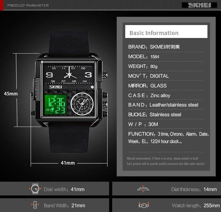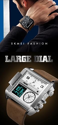 SKMEI brand attaches great importance to excellent user experience for buyers. We are committed to providing the best products and the best service. Fashionable classic style, unique design, exquisite workmanship, high-quality material suitable for all indoor and outdoor activities. This premium leather strap watch includes a Japanese imported quartz movement for clearer time display. In addition to the classic, impressive colorful dial design, this timepiece is given a bold, modern, unconventional look, simple shape and clean execution, making it look completely current sitting on any wrist. Chic casual style that expresses your personality Style: fashion casual big face men’s watch Equipped with triple time zone, date, day of the week, 12/24 hours and stopwatch functions Can see time clearly in the dark Large dial, 3 dials, triple movement, accurate time, very suitable for travelers
