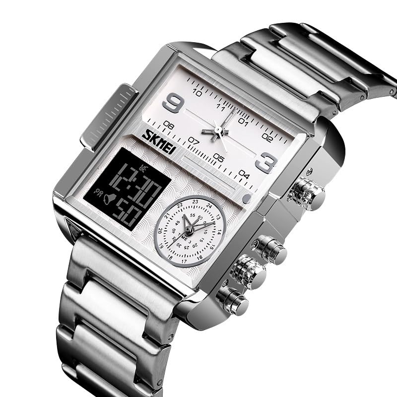 Digital Sports Watch: High-quality quartz movement with three time zones analog display, three working time zones design is very convenient for traveling. Fashionable sporty dial design, Large Dial and numbers with light, show time clear in the dark