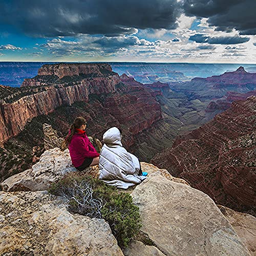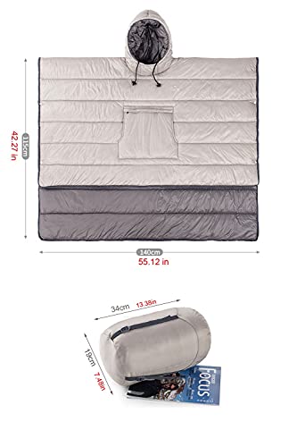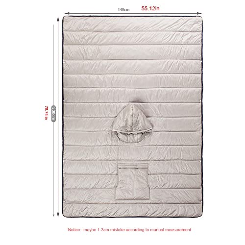 Multifunctional:The small quilt can be used as wearing cloak,it can also be used as a small quilt in tent.Or insulated poncho,ground cover,sleeping bag, pillow,hammock liner,under quilt,and shade canopy.(PLUS-SIZE,UNISEX)