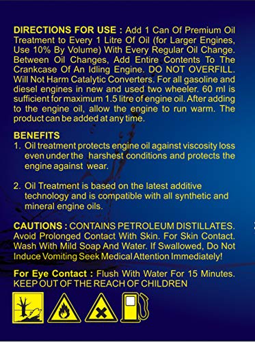 Add 1 can of premium oil treatment to every 4.5 quarts of oil (for large engines)