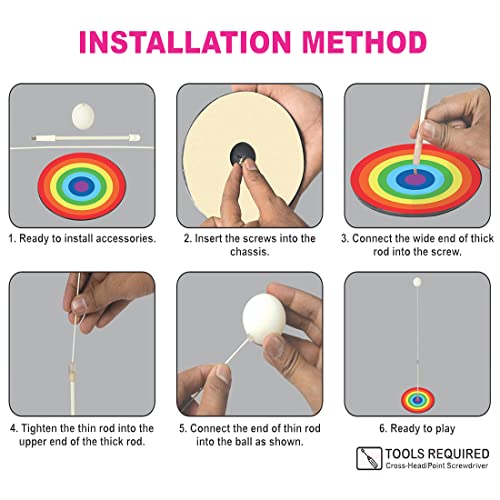 🏓 [HOW TO SET UP]:- 1. Ready to install accessories 2. Insert the screws into the chasis 3. Connect the wide end of thick rod into the screw 4. Tighten the thin rod into the upper end of the thick rod 5. Connect the end of thin rod into the ball. All Set. Now Its Playtime!