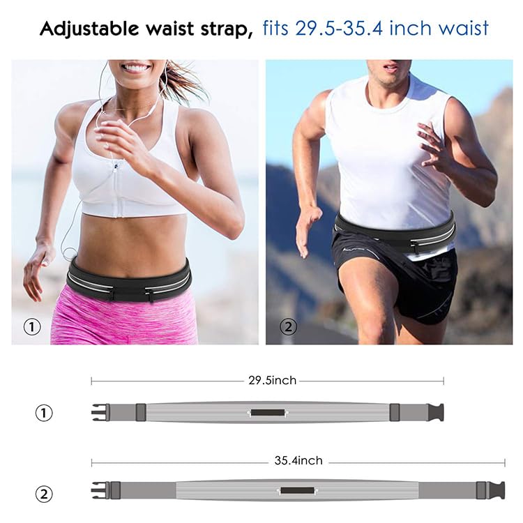 The ultra-lightweight, durable running belt is perfectly designed to hold your phone, key and cash while exercising. The breathable material keeps your body cool and the adjustable strap promises chafe-free exercise. Comfortable and water-resistant running belt with two zippered pockets will take your running experience to the next level!