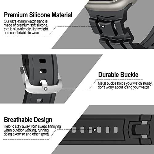 · Premium Silicone Material:Our ultra 49mm watch band is made of premium soft silicone, that is skin-friendly, waterproof, lightweight and comfortable to wear
